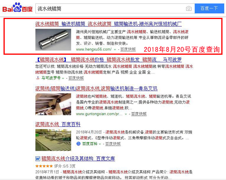 流水線滾筒 百度(PC)自然排名第1名
