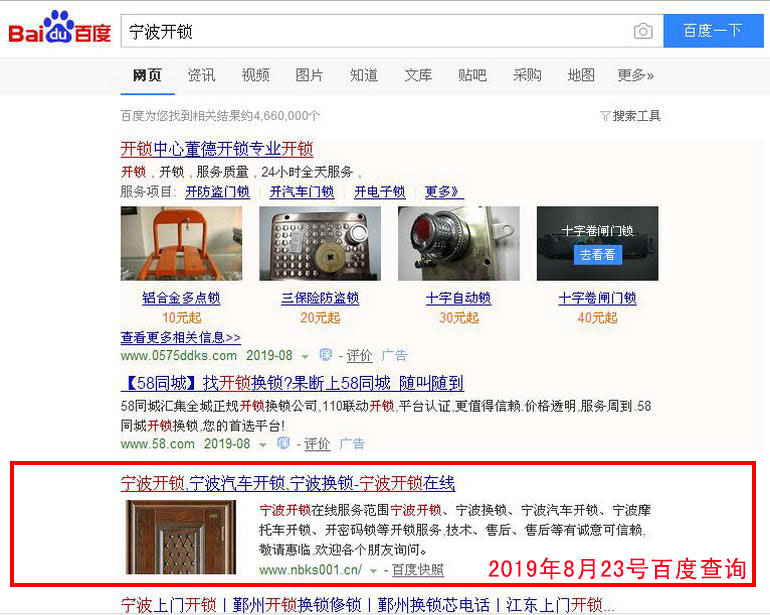 寧波開鎖 百度(PC)自然排名第1名